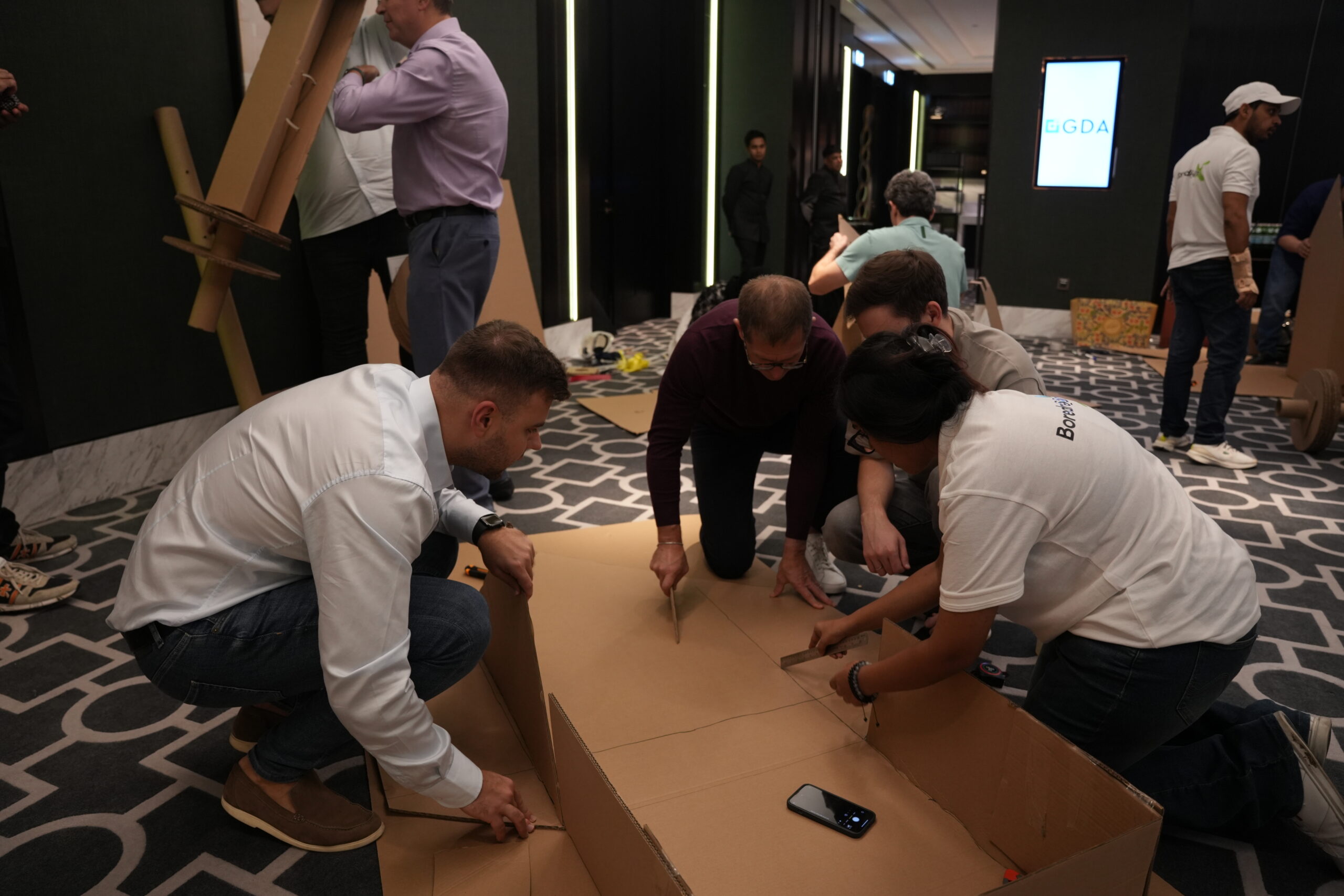 The activity starts with quick icebreakers and team formation. Half of the participants are blindfolded while their teammates give step-by-step instructions to build the tent. Midway through, roles are switched, helping everyone experience leading and following under pressure.